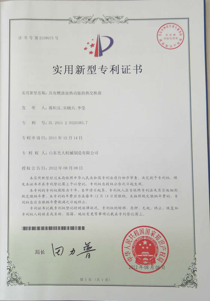 Heat exchanger with fuel oil heating function - utility model patent certificate